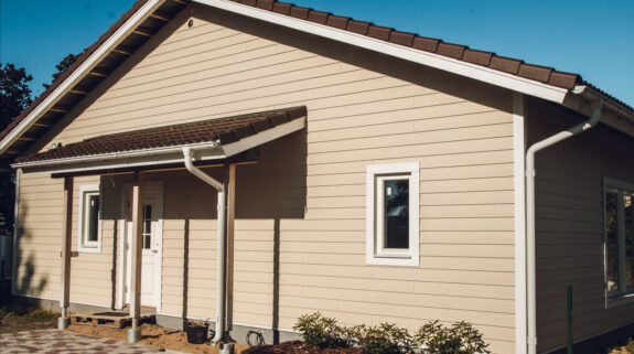 Pärnus paikneva eramu on uusehitis, mille fassaad kaeti Cedral lap kiudtsementvoodrilauaga, värvitoon C02. Väliste aknapalede viimistluses kasutati toon C01, et siduda detailid ühtseks tervikuks.