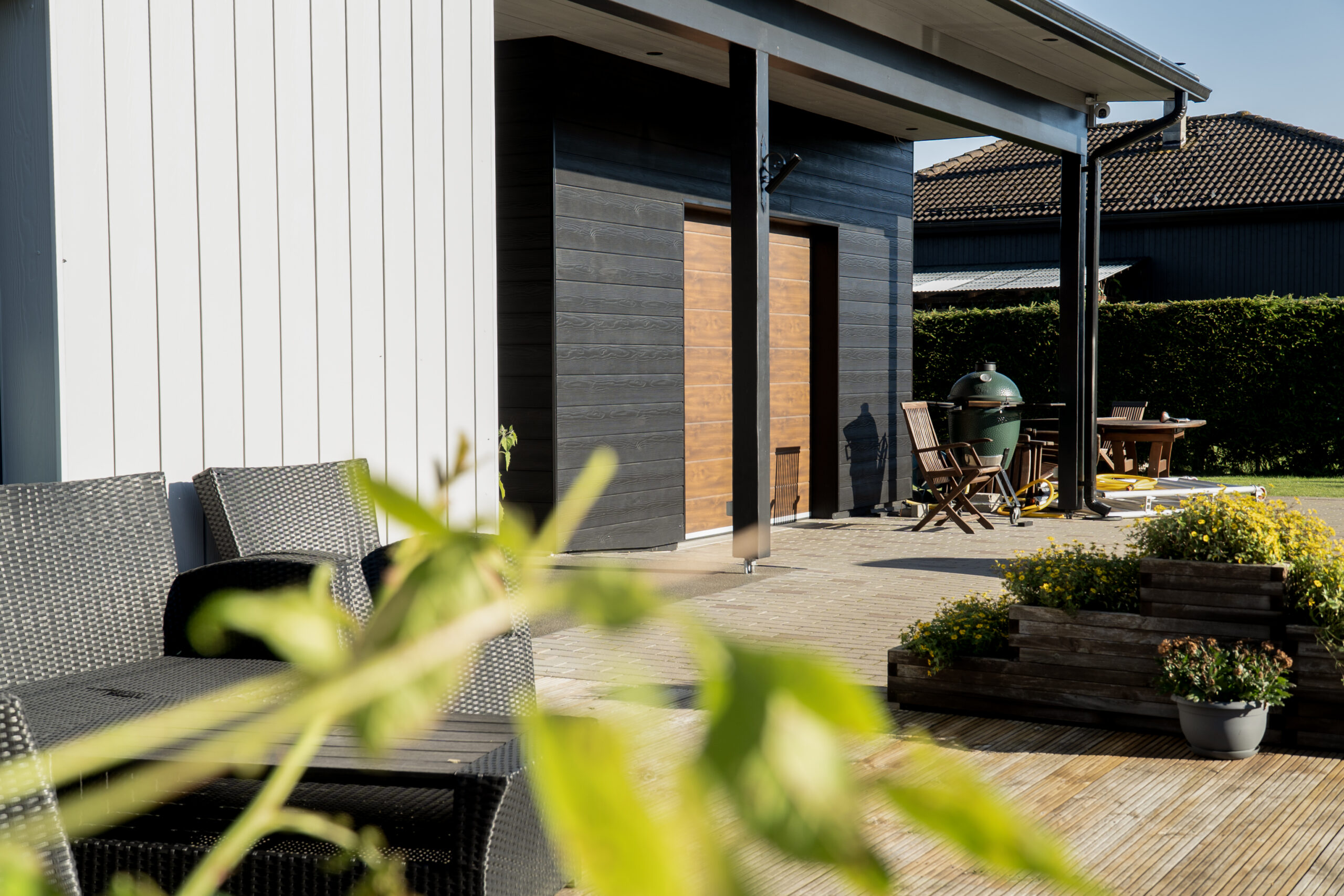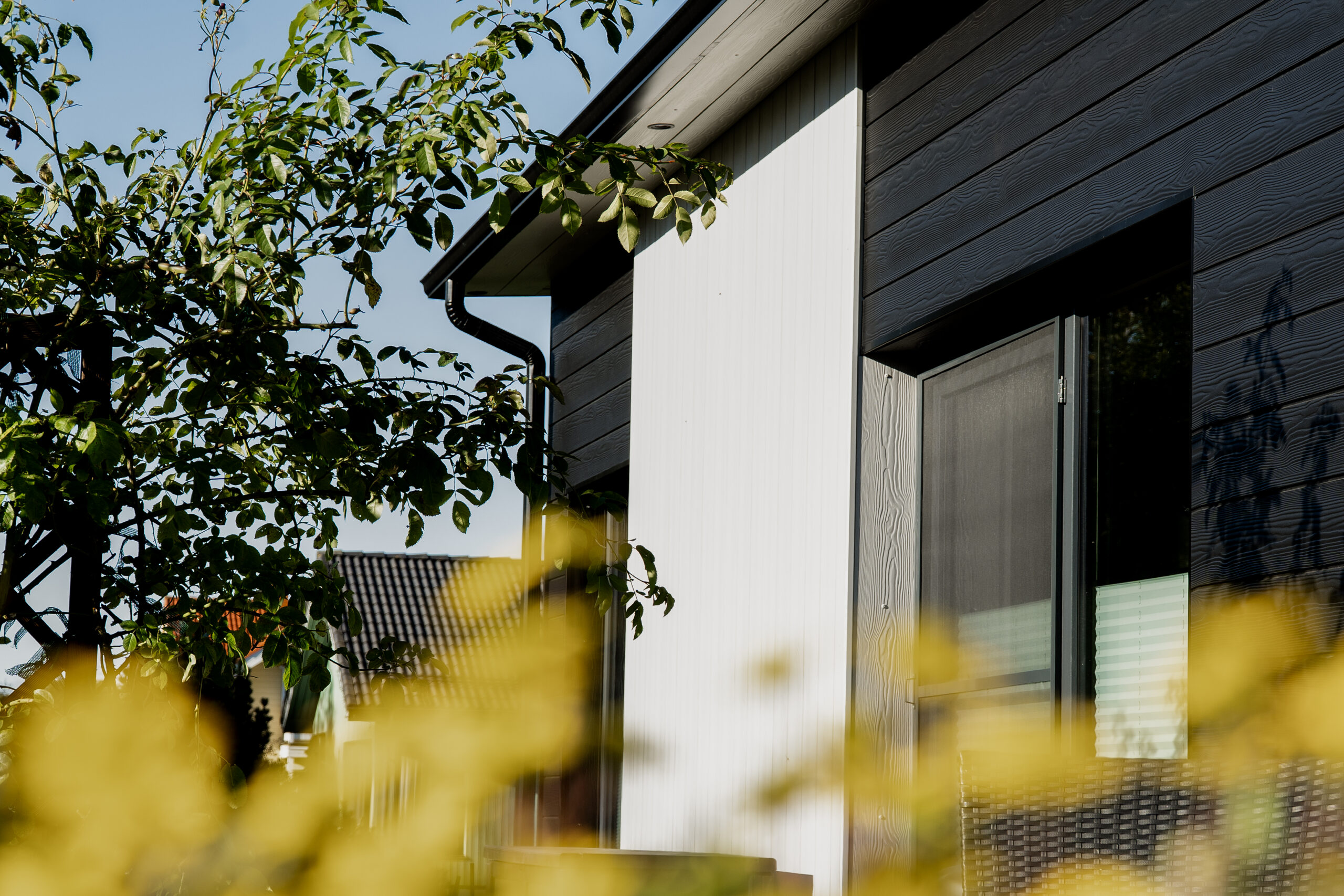 Cedral Click valiti renoveerimiseks ka selle pinnaviimistluse tõttu, mis imiteerib puitvoodri mustrit. Hoone külgedel vahelduvad kõrge kontrastusega mustad C50 ja plaatinahallid C05 standardtoonides voodrilauad. Vastupidav Cedral Click fassaadilaud on 15-aastase garantiiga, saadaval mitmes profiilis ja rohke värvivalikuga.