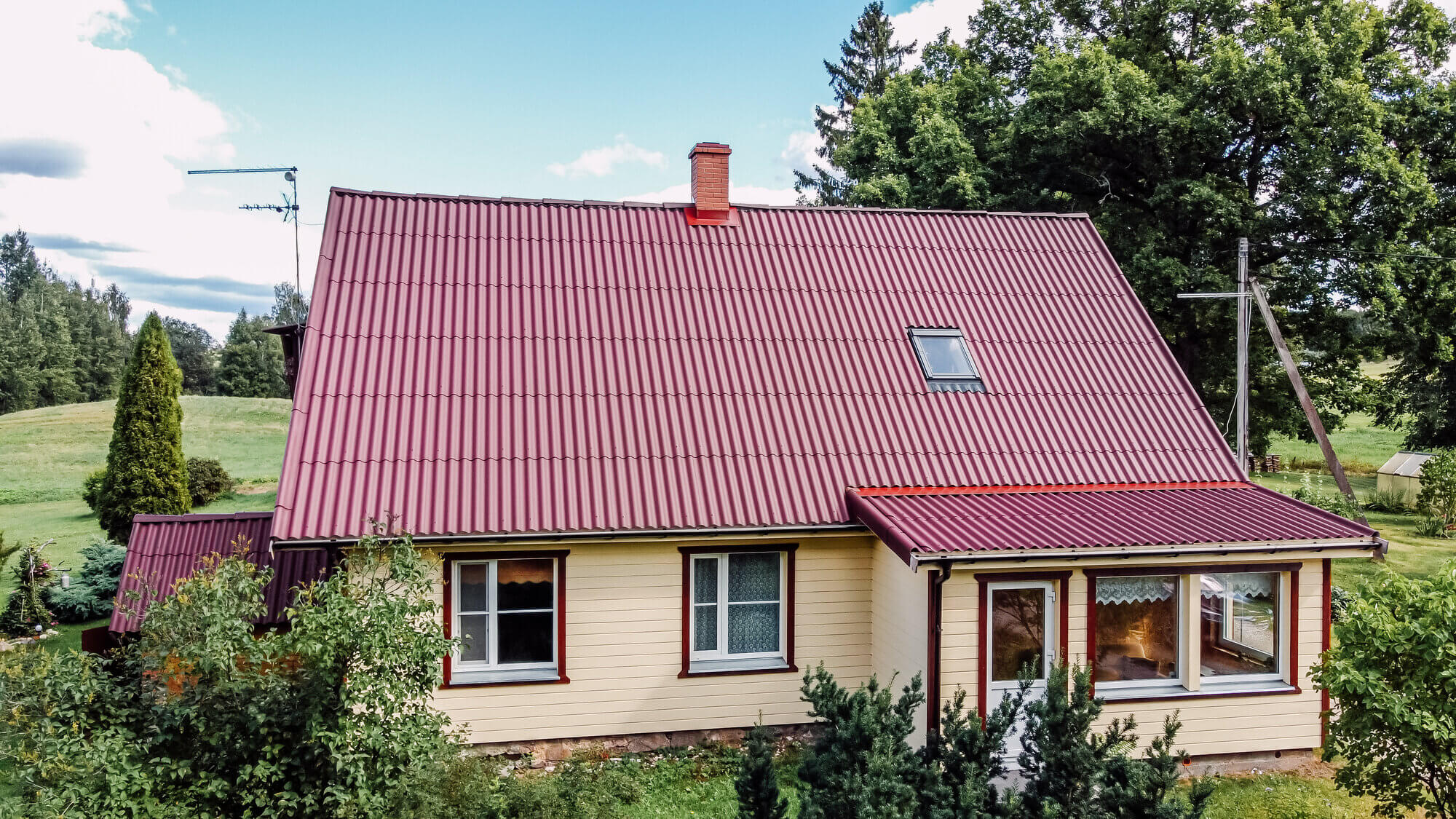 Eramu ehituseks valiti kaasaegne eterniit Leedu Eternit Klasika laineplaat, millel kirsipunane värvitoon. Laialdased katuse lisatarvikud rakendati mitme tiivaga hoonel ning tänaseks on 2022. aastal rajatud katus juba mitu talve kindel ja seda 30-aastasele garantiile tuginev.