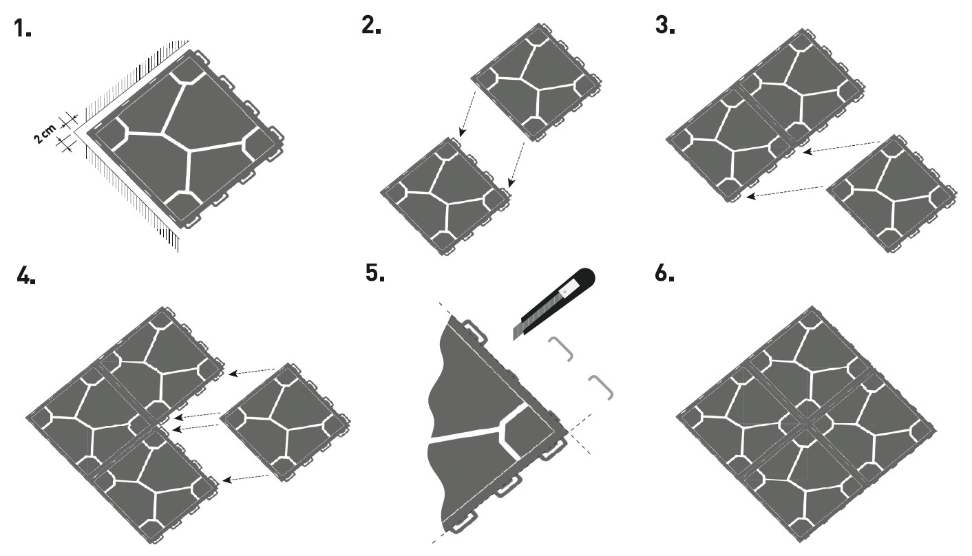Kaunis ja kruvivaba terras on ideaalne lahendus näiteks katuseterrassidele ja kortermajade rõdudele. Valikus on neli erinevat moodullahendust meelepärase põrandamustri loomiseks. Erinevaid värve on võimalik kombineerida. Lihtne ja kiire paigaldus.