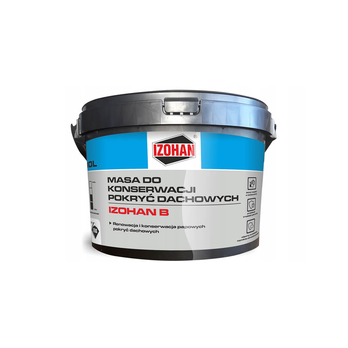 Katusemastiks Izohan B on mõeldud igat liiki lamekatuste hooldamiseks ja renoveerimiseks. Izohan B on veekindel ja tagab suurepärase kaitse sademete eest. Katusemastiks on koheselt kasutusvalmis ja seda saab soovitud katusepindadele kanda katuseharja või pintsliga. Pindu on soovituslik katta kaks korda, vähemalt 24-tunniste intervallidega. Püsiva nakke tagamiseks veenduge, et aluspind oleks puhas ja kuiv. Materjalikulu on 0,5 kg ruutmeetri kohta, olenevalt aluspinna seisukorrast.