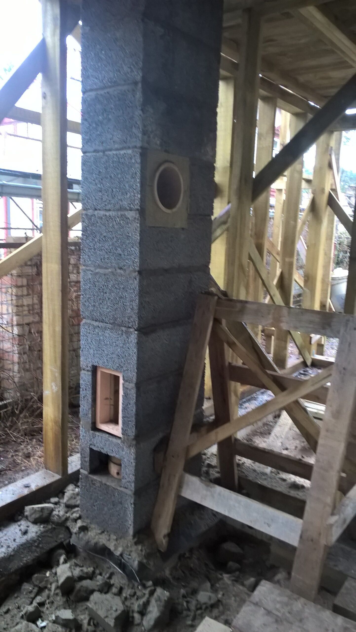 - Kergkruusbetoonist plokid: Korstna väliskesta moodustavad kergkruusbetoonplokid, mis on toodetud Leedus. Need plokid on kerged, kuid samas kõrge survetugevusega, tihedusega 1200 kg/m³ ja survetugevusega kuni 3,0 MPa.