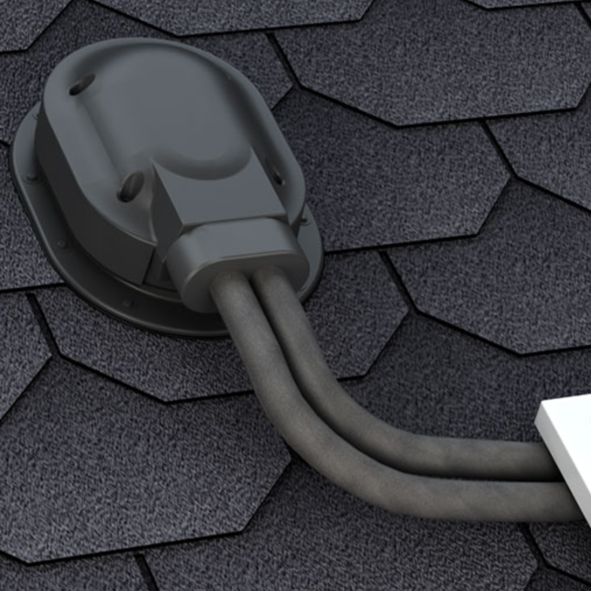 Päikesepaneeli ühenduse komplektis on: päikesepaneeli ühendus, sobiv katuseühendus/alune, must EPDM-kummist otsik.