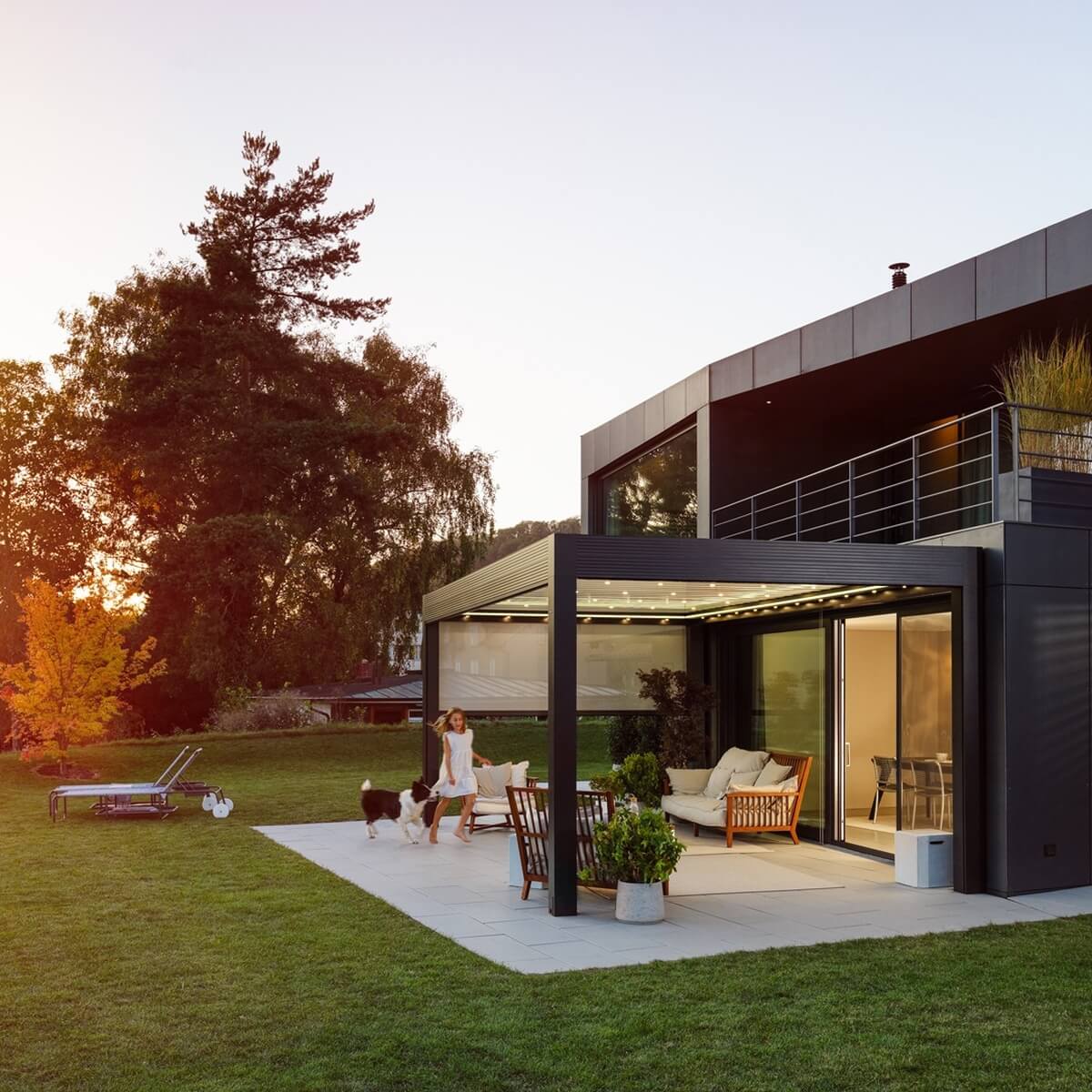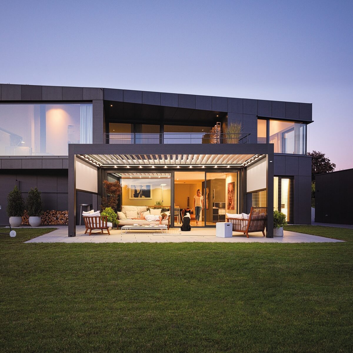 Konkreetsel mudelil on neli katuse lamelli varustatud sisseehitatud LED tuledega, mis pakuvad lugemisvalgust ning katuseraami sissepoole jäävat osa ümbritseb LED riba, mille värvitoon on puldist muudetav. Lisaks kuulub komplekti kaks ilmastikukindlast kangast rulookardinat. Rulookardinaid on võimalik juhtpuldist liigutada kas üles või alla. Samuti kuulub komplekti 1 siini peal liikuv klaassein.