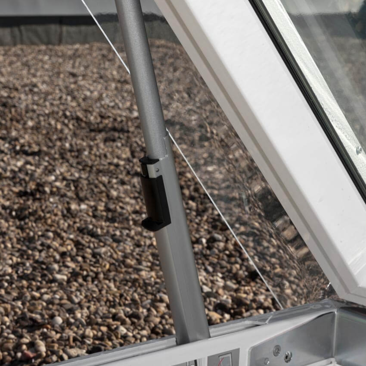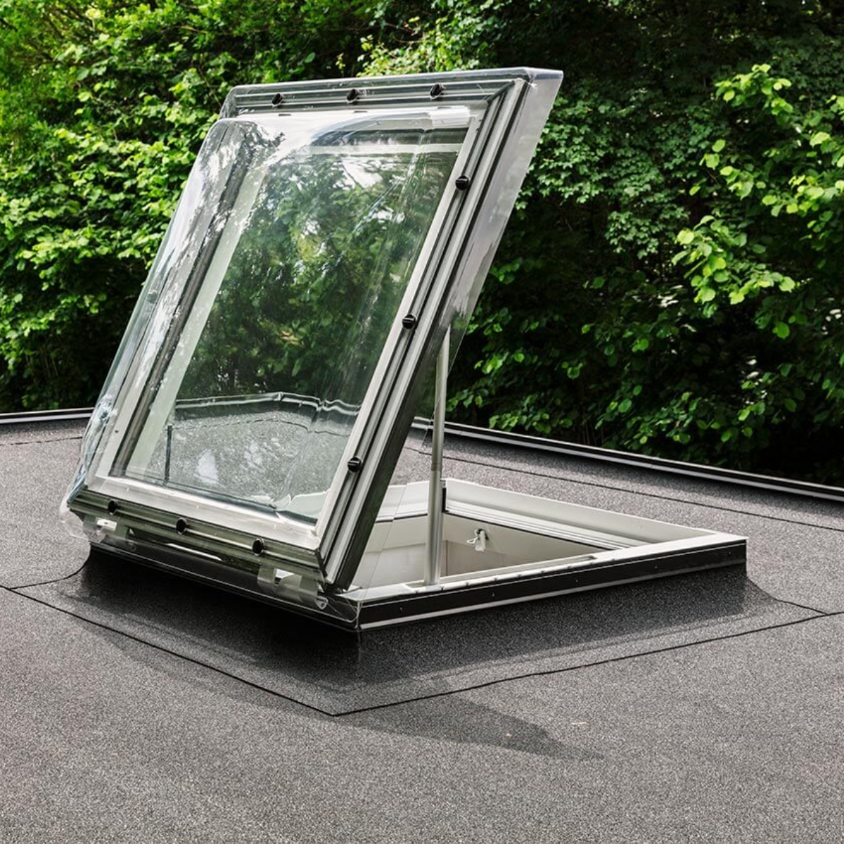 Kahekordse klaaspaketiga ja seda kaitsva akrüülkupliga lamekatuse väljapääsuaken on käsitsi avatav. Avanemisnurk kuni 60° ja läbipääsu kõrgus on 1187 mm. Aknaraam on soojustatud ja hooldusvaba. Suurepärane sooja- ja helipidavus.