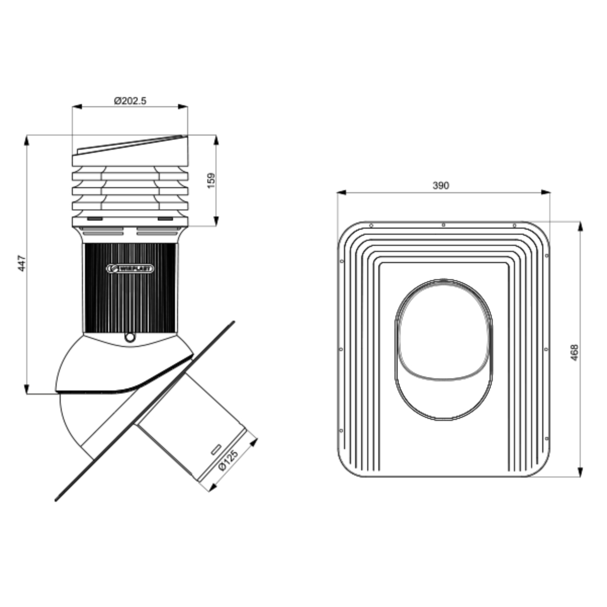 Ventilatsiooni läbiviik plekk- ja sindelkatustele Wirplast Normal EVO