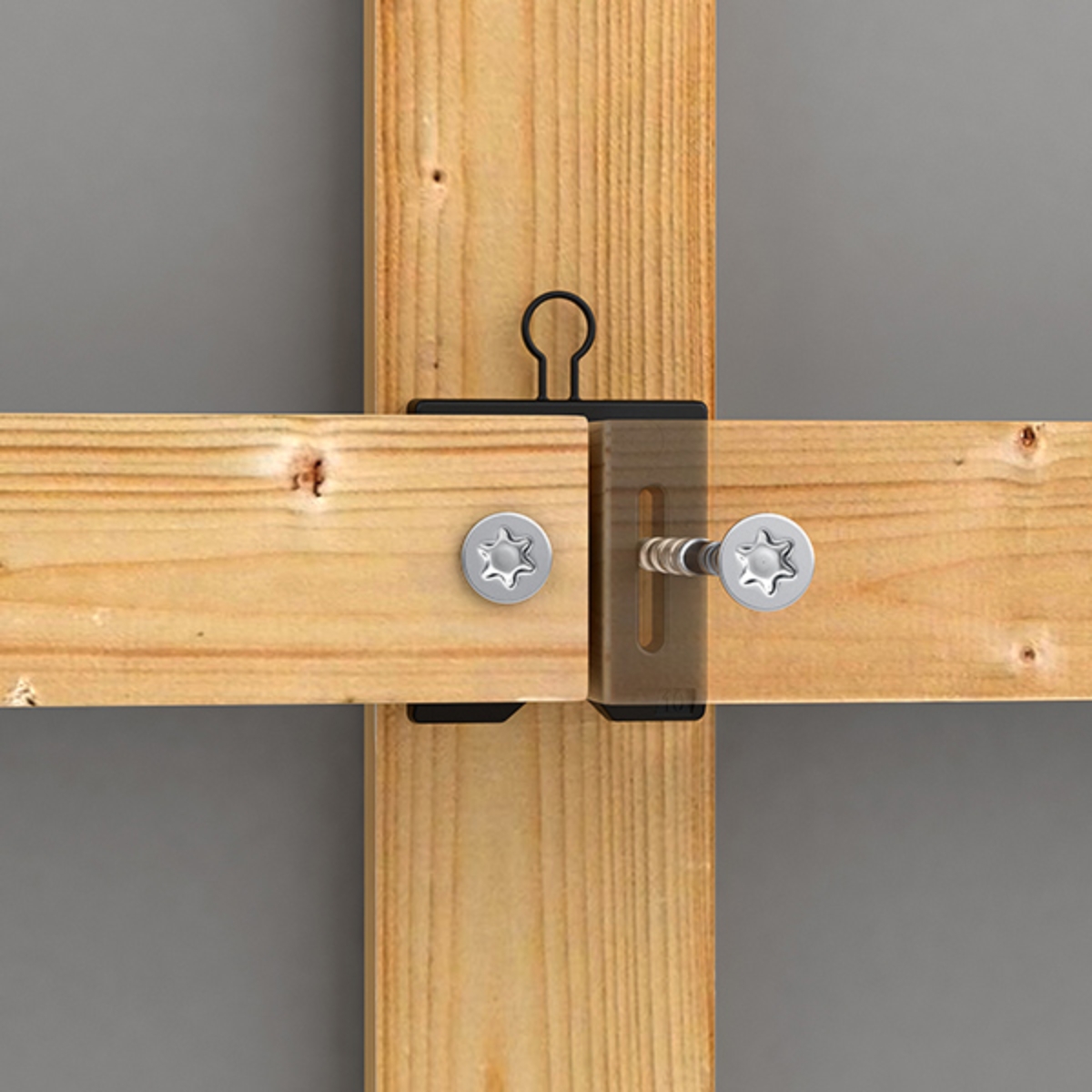 - Universaalne 10 mm laiune ava keskel võimaldab seda kruvile või naelale libistada.
