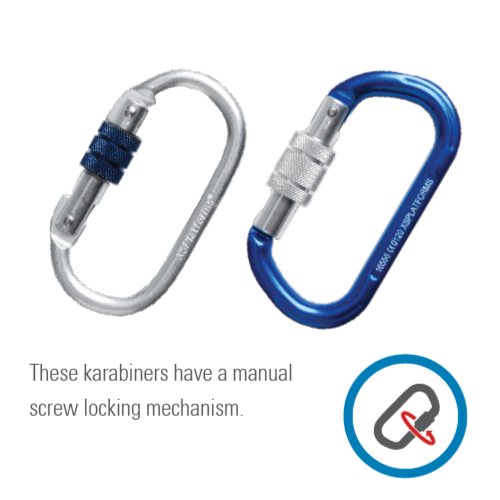 Kõik meie karabiinid ja konksud on saadaval erinevate lukustusmehhanismidega: standardne kruvilukk, topeltlukustusmehhanism ja kolmelukustusmehhanism. Viimane pakub täiendavat ohutust, lukustudes automaatselt vabastamisel.
