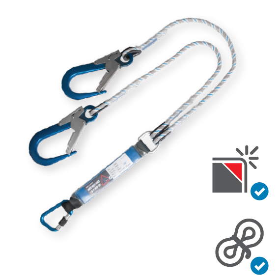 Leegi- ja kuumuskindel köis (kuni 371 °C) kahe anodiseeritud turvakonksu ja kruvikarabiiniga. |